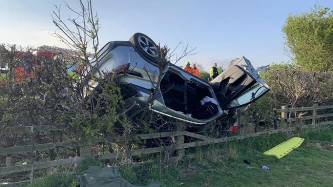 The emergency services were called out yesterday after a car left the road and crashed into a hedge.
