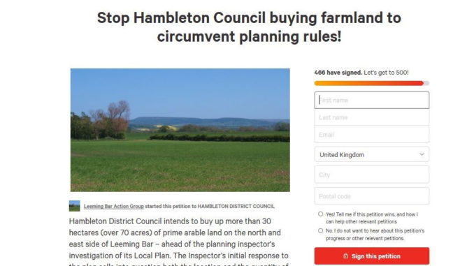 Almost 500 people have signed a petition opposing Hambleton council's plan to expand Leeming Bar industrial estate
