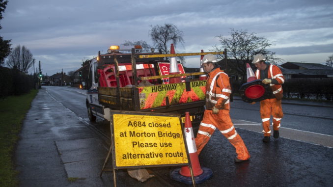 The road is closed at Morton-on-Swale. Photo: NYCC.