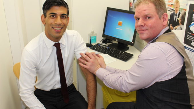 Mr Sunak visited Boots Pharmacy in Richmond to find out more about the national pharmacy flu vaccination service.