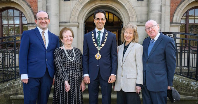 North Yorkshire Council Chair with representatives from the Harrogate Hebrew Congregation outside County Hall in Northallerton. Left to right: Hayden Cohen, Vice-President and Chair Roma Cohen, Cllr Jabbour, Ann Morris OBE and President Bernard Cohen.